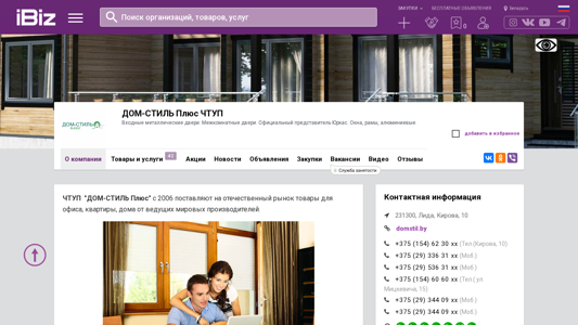 | Название / Заголовок | ДОМ-СТИЛЬ Плюс ЧТУП - Входные металлические двери. Межкомнатные двери. Официальный представитель Юркас. Окна, рамы, алюминиевые. . 231300, Лида, Кирова, 10 |