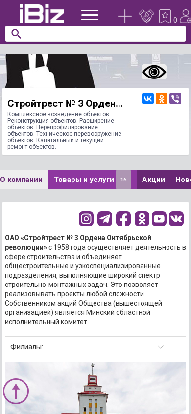 | AI-анализ | The portal "Stoytrest No. 3 Order of the October Revolution OAO" is a complex construction company based in Soligorsk, Belarus, with addresses in Slutsk and Soligorsk. The company specializes in the comprehensive construction of objects, their reconstruction, extension, reprofiling, technical reequipment, and capital and current repairs. The company is owned by the Minsk regional executive committee and has several branches, including SU-55 in Slutsk, SU-95 and SU-123 in Soligorsk. Each branch has its own contact information and working hours, which are listed on the website. The company has been in operation since 1958 and offers a wide range of construction services, from simple to complex projects. |