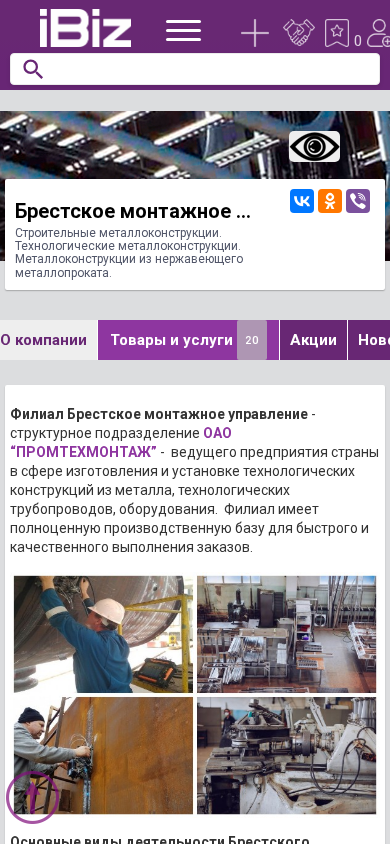 | Название / Заголовок | Брестское монтажное управление Филиал ОАО Промтехмонтаж - Строительные металлоконструкции. Технологические металлоконструкции. Металлоконструкции из нержавеющего металлопроката.. 224030, Брест, , 2-я Заводская, 1 |
