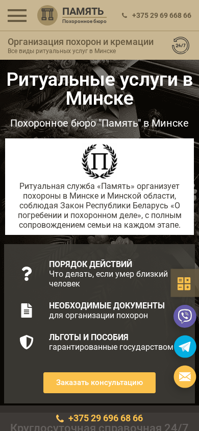 SEO-описаниеРитуальные услуги в Минске с полным сопровождением – организация похорон, кремация, оформление документов, помощь в получении пособия. Круглосуточно, честные цены.