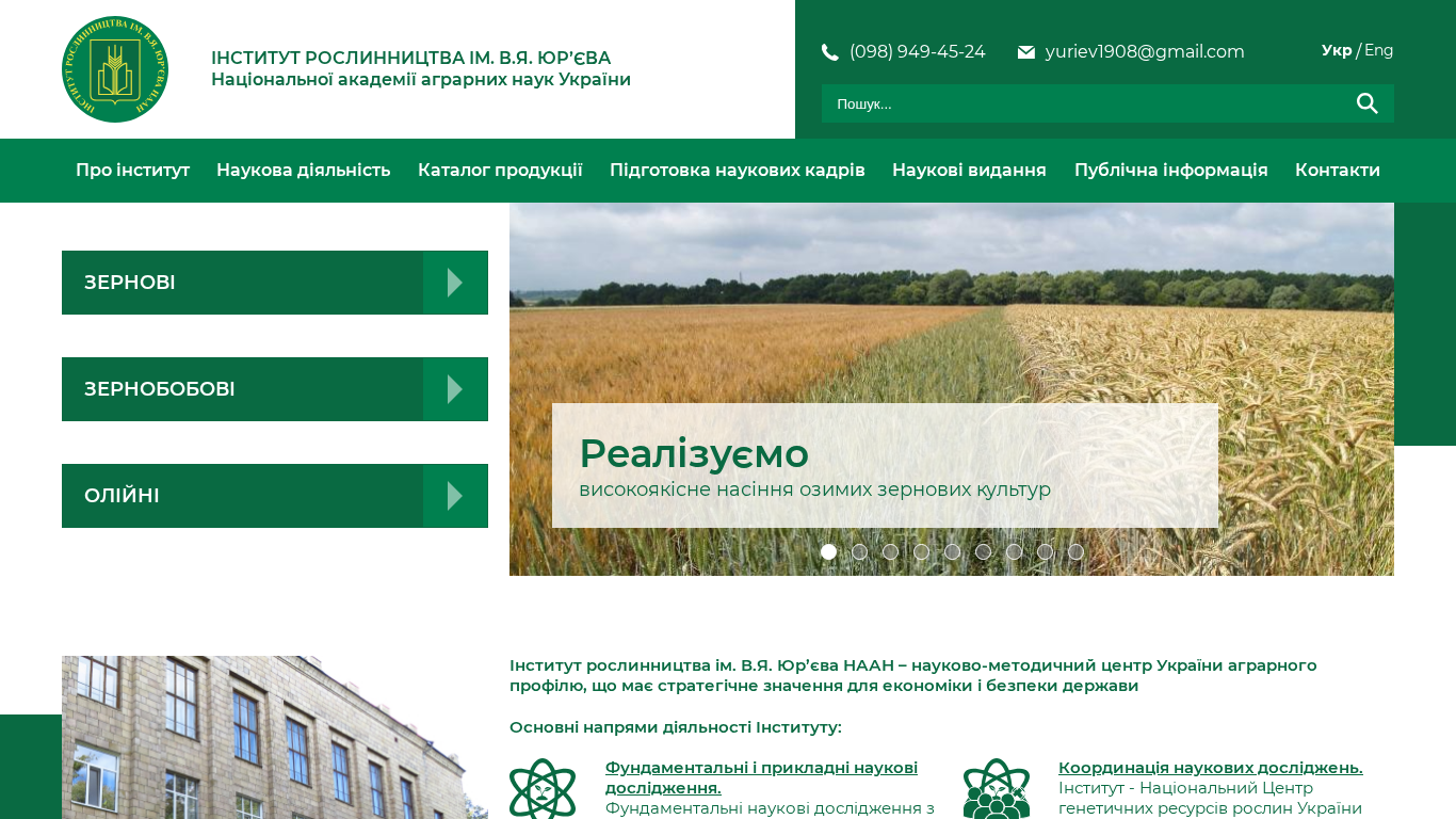 Название / Заголовок | Головна - Інститут рослинництва ім. В. Я. Юр’єва НААН |