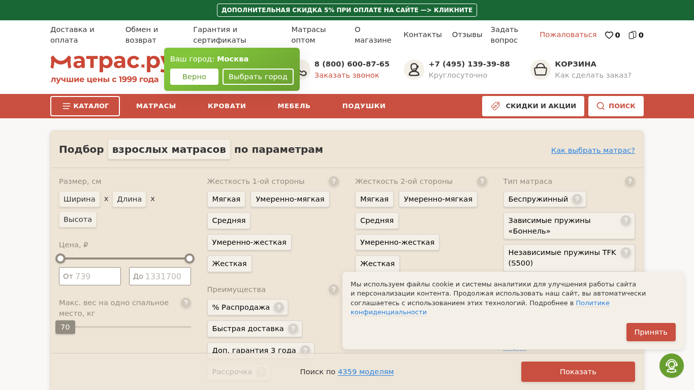 Название / Заголовок | Купить матрас в Москве: цены на официальном сайте интернет-магазина «Матрас.ру» |