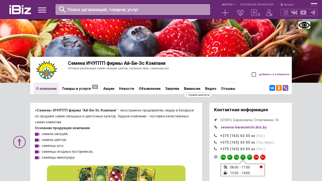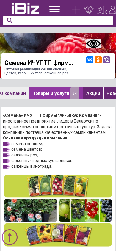 favicon Семена ИЧУПТП фирмы Ай-Би-Эс Компани - Оптовая реализация семян овощей, цветов, газонных трав, саженцев роз. . 225410, Барановичи, , Спортивная, 16
