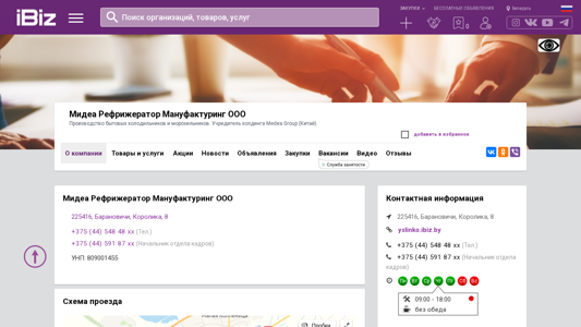 Название / Заголовок | Мидеа Рефрижератор Мануфактуринг ООО - Производство бытовых холодильников и морозильников. Учредитель холдинга Medea Group (Китай).. 225416, Барановичи, , Королика, 8 |