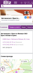 | Название / Заголовок | Автовокзал г.Бреста Филиал ОАО Брестоблавтотранс - Организация пассажирских поездок.. 224003, Брест, , Лейтенанта Рябцева, 45, 2 этаж |