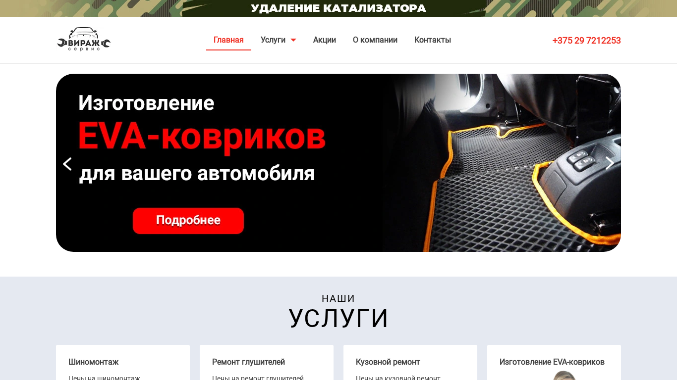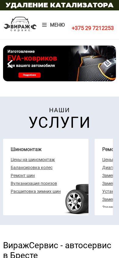 | SEO-описание | ВиражСервис - шиномонтаж и ремонт глушителей в Бресте круглосуточно. Кузовной ремонт и компьютерная диагностика. Качество по лучшей цене! |