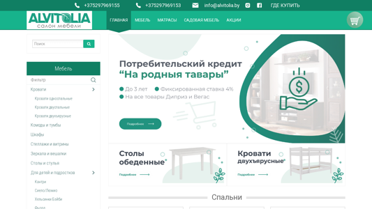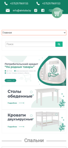 | AI-анализ | This online resource is a Belarusian furniture store named Alvitolia, based in Brest. The website offers customers the opportunity to buy wooden Belarusian furniture from the Depriz and MMZC series with a stock located in Brest. Delivery and a guarantee are available. The website features a wide range of furniture, including children's bedrooms, living rooms, and entryways. The top_words data indicates that popular categories include 'fjord', 'rauna', 'kolonial', 'cantri', 'sielo', and 'helsingki'. Furniture pieces include beds, wardrobes, cabinets, tables, and chairs. The contact information provided includes two phone numbers and an email address. The website also includes sections for sales, a main content block, and popular and recently viewed products. The domain is alvitolia.by. |