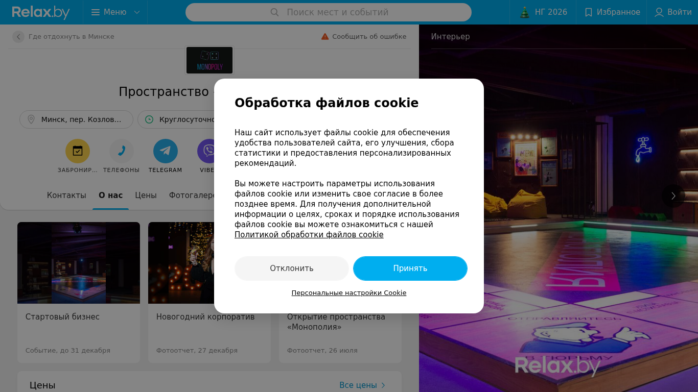 | SEO-описание | Пространство Монополия в Минске – отзывы, телефоны, график работы и карта проезда на Relax.by |