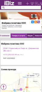 | AI-анализ | The portal prikormka.ibiz.by is an e-commerce website for fishing products and services. It offers a wide range of items including bait, additives, lures, accessories, and clothing. The company, named Фабрика позитива ООО, is located in the village of Озеро аг., Dzerzhinskaya, 28B, kom. 2, in the Uzden district of Belarus. Contact information, including a phone number and a map, is provided for the company. The website features sections for company information, products and services, as well as news, vacancies, and customer reviews. The company is listed under the categories 'Товары для отдыха и туризма' and 'Товары для отдыха и туризма в Узде'. The website is operated by O |