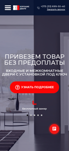 | AI-анализ | This website is an e-commerce platform for the sale and installation of entrance and interior doors in Belarus. The title is "Gooddoors — Продажа и установка входных и межкомнатных дверей. Самые низкие цены." The description includes keywords such as "панели," "двери," "толщина," "материал," "тип," "мдф," "внутренней," "дверь," "руб," "рассчитать," "стоимость," "пвх," "вид," "покрытия," "дуб," "2050," "наружной," "покрытие," "сталлер," "межкомнатная," and "акция дня." The top_words include "панели" (3 |