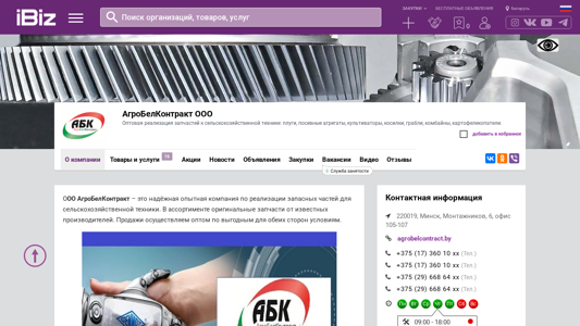Сайт: agrobelcontract.ibiz.by — HTTP 200 (OK)