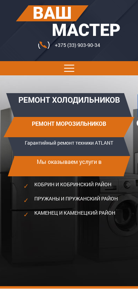 | AI-анализ | The web project "Vash Service" is a local repair and maintenance service for home appliances, specifically for refrigerators and freezers (refrigerators and freezers repair). The company offers both warranty and non-warranty repairs on clients' premises in Cobrin, Cobrin district, Pruzhany, Pruzhansky district, and Kamyanyets, Kamyanyetsky district. The business has over 10 years of experience in repairing household appliances and provides certified tools and original spare parts to ensure long-lasting repairs. Clients can contact the company at 08-20 +375 (33) 903-90-34 for repairs and can leave a request for a master to schedule a time. Repairs can be done both at home and in a specialized workshop, depending on the complexity of the issue. The repair |