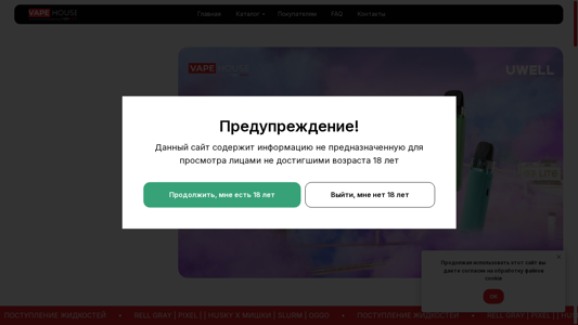 | AI-анализ | The portal is an online store specializing in POD-systems, disposable electronic cigarettes, liquids, premium calibans, nicotine pouches, snus, and components for delivery in Minsk and Belarus. The store is named VAPE HOUSE and is located at Кульман 5б, ТЦ «Атлантик» in Minsk. The catalog includes various brands of POD-systems, nicotine pouches, liquids, calibans, and components for sale, with popular items listed such as the OXVA Xlim GO POD-system and the SKEY Gemma 7000 disposable electronic cigarette in various colors. The store offers delivery within Minsk for 10 BYN, delivery outside of Minsk up to 10 km for 15 BYN, delivery through Belpochta and Europoch |