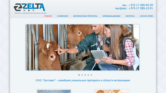 | AI-анализ | This website is the official homepage of the Belarusian limited liability company "Зелтавет" (Zeltavet), specializing in veterinary medicines and feed additives. The site uses the Joomla! platform for dynamic content management and is organized into pages such as "About the Company," "Veterinary Preparations," "Feed Additives," "Contacts," and "Downloads." The company's offerings include the latest unique veterinary medicines and feed additives, with information provided on each product. Additionally, the site offers services for website development and promotion through Aliva.BY. |