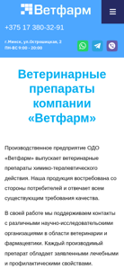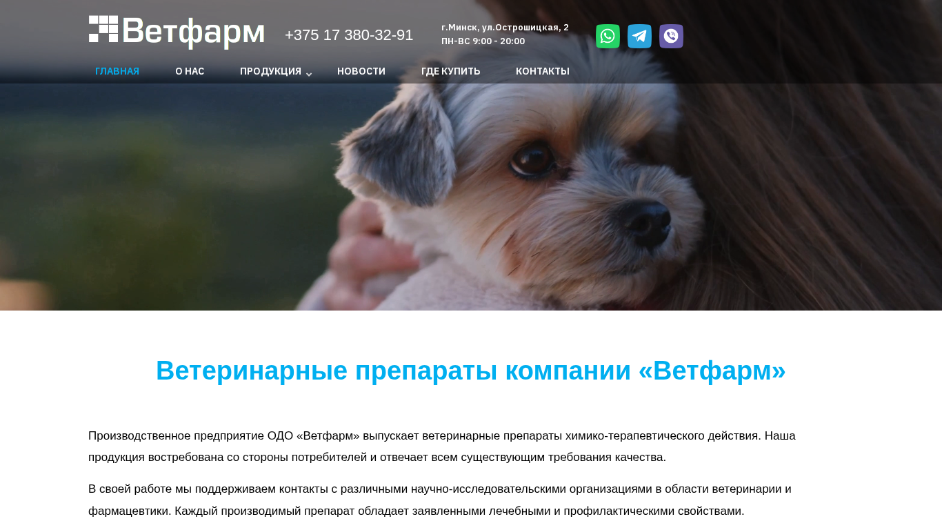 | SEO-описание | «Ветфарм» - производство, оптовая и розничная продажа ветеринарных препаратов - Беларусь, Минск ⭐⭐⭐⭐⭐ Звоните ☎ +375 17 380-32-91, +375 29 771-57-93 |