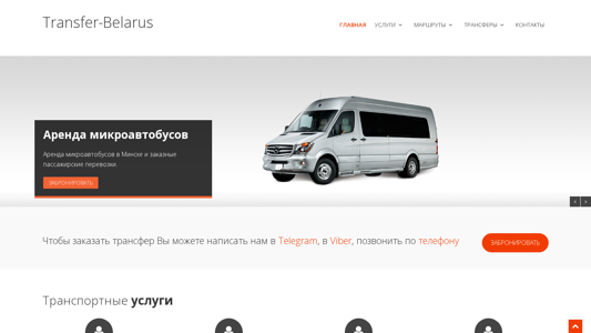 | AI-анализ | --- The portal Transfer-Belarus offers passenger transportation services and bus rentals in Minsk, Belarus. It provides minibus rentals for events such as weddings and transfers to airports, hotels, and cities. Keywords include passenger transportation, bus rentals, and minibus rentals. The most frequently used words on the site are transfer, rental, passenger, minibus, Minsk, and contacts. Services include minibus rentals with driver, transfers to sanatoriums, hotels, and airports, and transfers to various cities and countries. The site also offers transfers for excursions and events in Europe. |