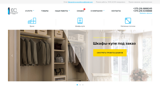 | AI-анализ | --- This website is dedicated to the custom production and installation of suspended ceilings, fitted kitchens, and wardrobes in Minsk, Belarus. The title and description include keywords such as "заказать" (order), "смотреть" (watch), "такую" (such), "работы" (works), "все" (all), and various product and company related terms. The company, Excellence Company, offers services in kitchen production, wardrobe production, and suspended ceiling installation, as well as discounts for repeat customers. The company boasts a high number of completed projects and aims to provide custom solutions for all clients. The website also offers a free consultation and measurement service. The domain is registered to the email address [Alexandrov.excellence@gmail.com](mailto:Alexandrov.excellence@gmail.com) and operates daily from 9 |