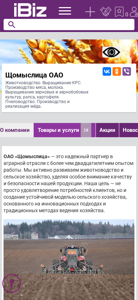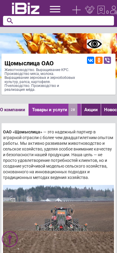 | Название / Заголовок | Щомыслица ОАО - Животноводство. Выращивание КРС. Производство мяса, молока. Выращивание зерновых и зернобобовых культур, рапса, картофеля. Пчеловодство. Производство и реализация мёда.. 223049, , Щомыслица аг., Кирюникова, 4 А |