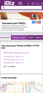| AI-анализ | This website is the online presence of Grand-Servis Group OOO, a trading company located in Minsk, Belarus, at Voloďko 9, office 8. The company specializes in the sale of diagnostic and tire changing equipment, automatic stations for servicing air conditioners, and components both wholesale and retail. The website provides a map for visitors to find the business location, as well as contact information with three phone numbers: +375 (29) 617 78 xx, +375 (17) 328 14 xx, and +375 (33) 617 78 xx. The company's Unified State Register number is 192546880. The website offers a range of services and products related to equipment for gas stations, auto washes, and |