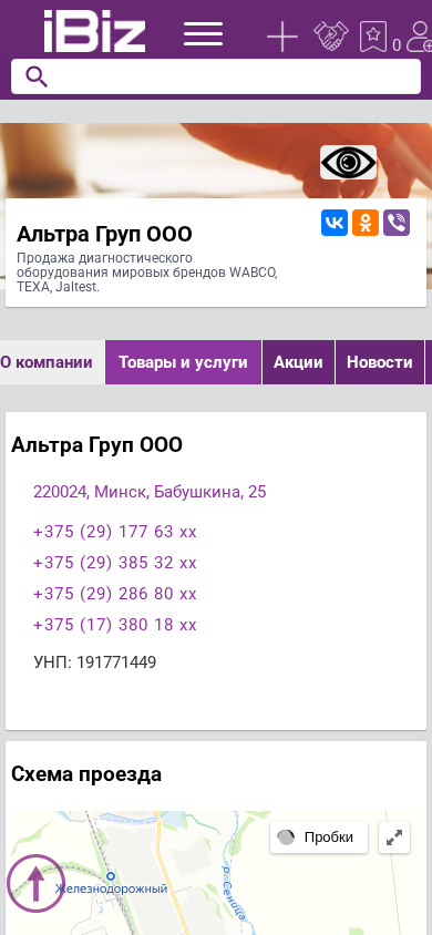| Название / Заголовок | Альтра Груп ООО - Продажа диагностического оборудования мировых брендов WABCO, TEXA, Jaltest.. 220024, Минск, , Бабушкина, 25 |