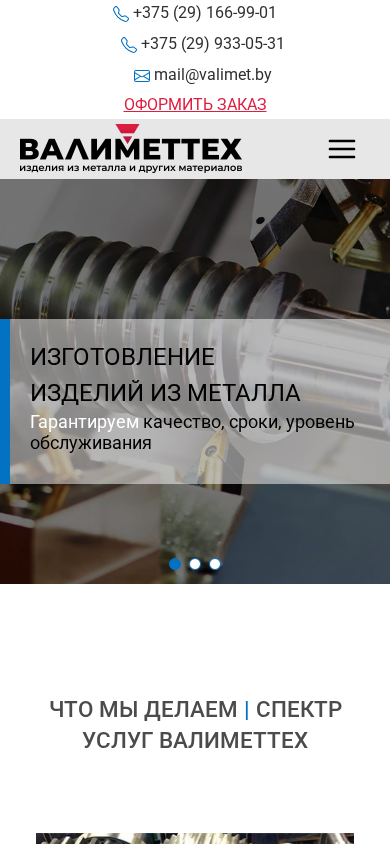 | SEO-описание | Изготовление металлоизделий в Минске – ООО "ВАЛИМЕТТЕХ". Минимальные сроки. Конструкторское бюро. Контроль качества. Изготовление по образцу, гибкие условия оплаты |