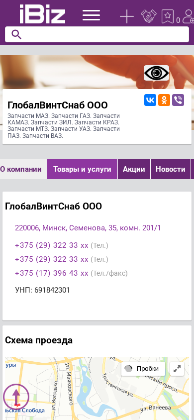 SEO-описание | ГлобалВинтСнаб ООО - Запчасти МАЗ. Запчасти ГАЗ. Запчасти КАМАЗ. Запчасти ЗИЛ. Запчасти КРАЗ. Запчасти МТЗ. Запчасти УАЗ. Запчасти ПАЗ. Запчасти ВАЗ.. Схема проезда, контактные телефоны, адрес компании ГлобалВинтСнаб ООО. 220006, Минск, , Семенова, 35, комн. 201/1 |