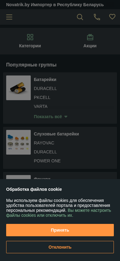 Адрес | г. Минске является одним из импортеров элементов питания (батареек), аккумуляторов, стационарных аккумуляторов, зарядны |