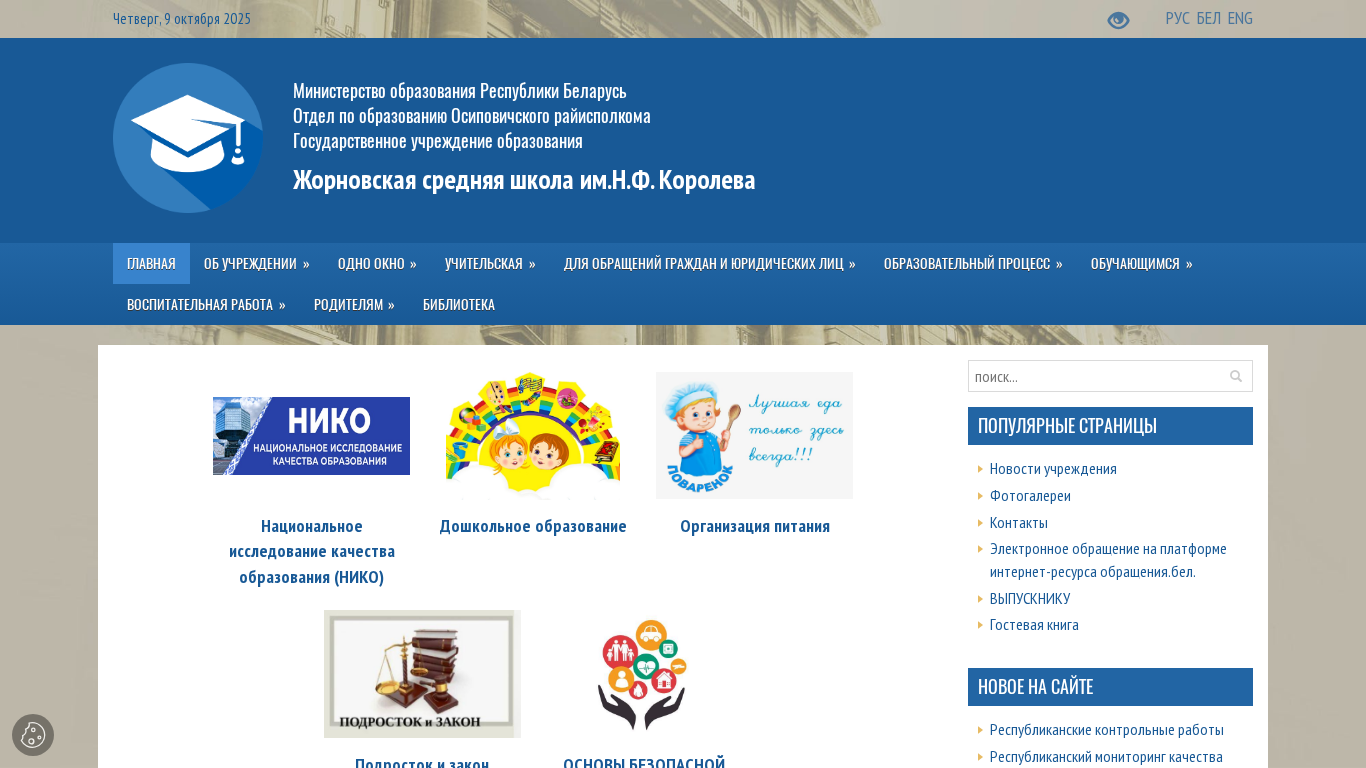 | Название / Заголовок | Жорновская средняя школа им.Н.Ф. Королева |