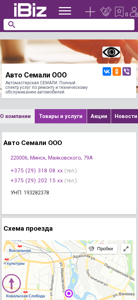 | AI-анализ | This website is for the Belarusian company Авто Семали ООО, which offers a full range of repair and maintenance services for automobiles. The website includes information about the company's location in Minsk, Belarus, at Маяковского, 79A, with contact telephone numbers +375 (29) 318 08 xx and +375 (29) 202 15 xx. The company's UNP number is 193282378. The website also features a map for directions, business hours from Monday to Saturday from 9:00 AM to 6:00 PM without lunch breaks, and various categories for products and services such as autoservicing and repairs. The website also includes sections for news, vacancies, customer reviews, and contacts for the company's |