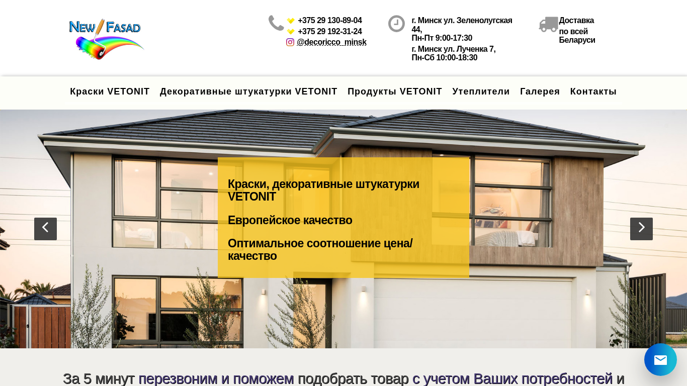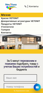| AI-анализ | The portal Newfasad.by is a Belarusian e-commerce website specializing in facade paints and decorative plasters. The title of the website is "Новый фасад — Фасадные краски и декоративные штукатурки", which translates to "New Façade — Facade Paints and Decorative Plasters". The description includes the keywords "фасадные краски" (facade paints) and "декоративные штукатурки" (decorative plasters). The top words include "увеличить" (increase), "изображение" (image), "vetonit" (a brand name), "заказать" (order), "консультацию" (consultation), "бел" (Belarus), "руб" (ruble |
