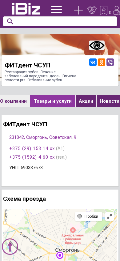 | Название / Заголовок | ФИТдент ЧСУП - Реставрация зубов. Лечение заболеваний пародонта, десен. Гигиена полости рта. Отбеливание зубов. . 231042, Сморгонь, , Советская, 9 |