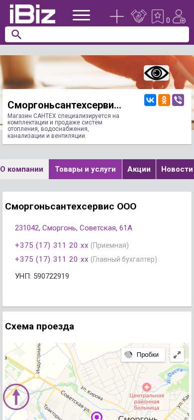 | Название / Заголовок | Сморгоньсантехсервис ООО - Магазин САНТЕХ специализируется на комплектации и продаже систем отопления, водоснабжения, канализации и вентиляции.. 231042, Сморгонь, , Советская, 61А |