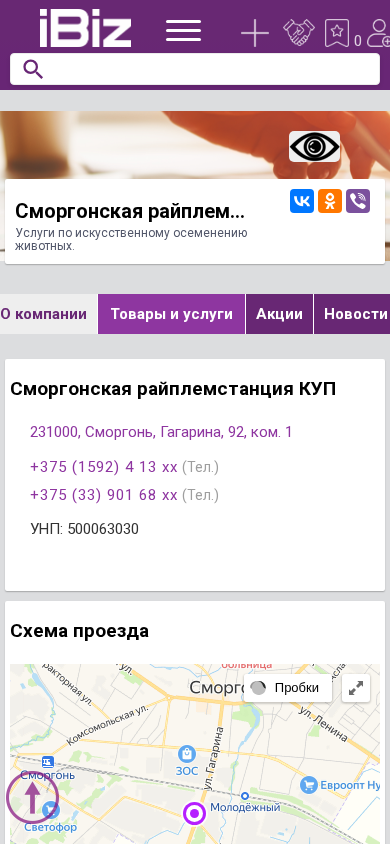 | Название / Заголовок | Сморгонская райплемстанция КУП - Услуги по искусственному осеменению животных. . 231000, Сморгонь, , Гагарина, 92, ком. 1 |