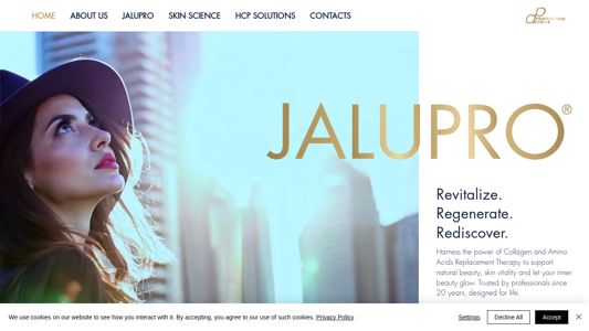 | AI-анализ | subdomain: home page_title: Home | Jalupro page_description: Harness the power of Collagen and Amino Acids Replacement Therapy to support natural beauty, skin vitality and let your inner beauty glow. Trusted by professionals since 20 years, designed for life. The portal Jalupro is a professional skincare solutions provider that emphasizes the importance of collagen production and connective tissue rejuvenation for skin health and beauty. With a focus on scientific innovation and proven results, the website offers a range of skincare products and information designed to support the natural beauty and vitality of the skin. The site includes sections on skin science, real stories of successful use, and solutions for healthcare professionals. The mission of Jalupro is to enhance skin health and beauty through scientific excellence in aesthetic treatments. The website features testimonials from satisfied customers and |