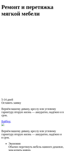 | Название / Заголовок | Перетяжка и ремонт мягкой мебели. Выезд и доставка БЕСПЛАТНО. |