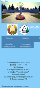 | AI-анализ | This online resource is the official website for "Хойникский коммунальник" (Hoiniksky Communal Enterprise), a state-owned communal and housing utility organization in the city of Hoyniki, Belarus. The website offers various services including documentation submission, electronic requests, information about the organization's management, and details on the services and tariffs offered by the enterprise. The main focus of the site is providing residents with information on the hours of operation for various departments, contact information, and a list of administrative procedures. Additionally, there is a section dedicated to emergency situations, and a page for vacancies within the organization. The site also includes information on the canteen services, sports and cultural activities, and a section for fighting corruption. The website operates from Monday to Saturday, with specific hours for the passport desk and the main office. The contact information includes a telephone number and email address, as well |