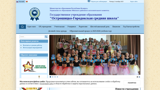 | AI-анализ | --- The portal o-gorodok.minsk.edu.by is dedicated to Ostroshitsko-Gorodok Secondary School, an educational institution in Minsk, Belarus. The website contains information about the school, its educational process, news, vacancies, and events. Popular topics include the history of the school, traditions, achievements, and various initiatives. The school's name and related keywords such as 'middle', 'school', and 'education' appear frequently. The site also features sections for contacts, a photo gallery, and an administrative notice. News articles cover topics related to the school, the republic, and the region, with recent stories including an event for youth safety, an eco-awareness campaign, and an announcement about access to a payment service. The site is operated by the Ministry of Education of the Republic of Belarus, and includes information about the school' |