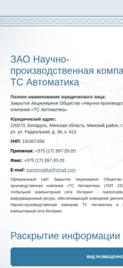 SEO-лексика | научно-производственная компания автоматика зао пароль e-mail информации закрытое акционерное общество адрес унп 192407458 375 397-20-20 tsavtomatika глобальной компьютерной сети интернет |