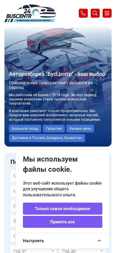 SEO-описание | Продажа б/у автозапчастей в Минске в каталоге Бусцентр 24. Запчасти для всех марок авто! Автозапчасти для иномарок с авторазборок из Европы. Звоните по телефону + 375 (29) 641-09-09 |