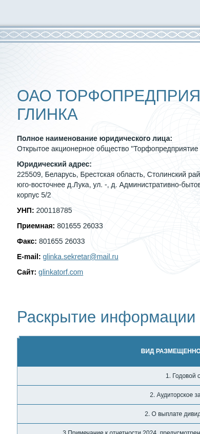 ТОРФОПРЕДПРИЯТИЕ ГЛИНКА ОАО
