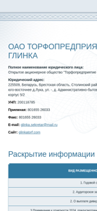 Название / ЗаголовокТОРФОПРЕДПРИЯТИЕ ГЛИНКА ОАО