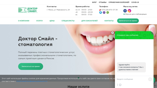 Название / Заголовок | Стоматология в Минске, платные стоматологические услуги в Доктор Смайл |