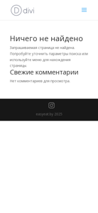 The portal easyeat.by is a Belarusian website with a title "easyeat.by" and a description that is currently empty. The top keywords for this website are "easyeat" which appears twice, and "страницу" and "найдено" which each appear once. Other top words include "выбрать", "поиска", "параметры", "нахождения", "страницы", and "меню". The homepage greets visitors with a message that no requested page was found and suggests they try to refine their search parameters or use the menu to find the desired page. There are no fresh comments for viewing on the site, but an Instagram account with the name easyeat.by is active in the year 2025.