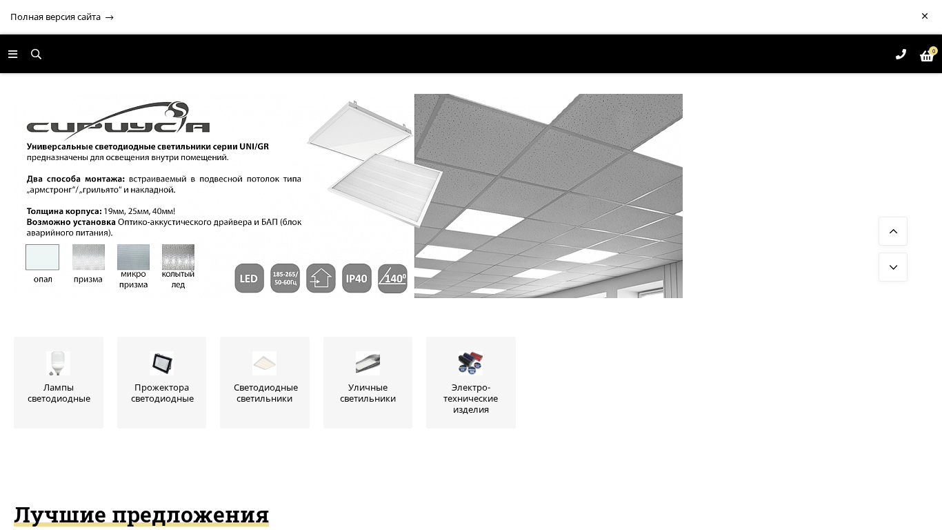 | SEO-описание | Купить светодиодное освещение СириусА: цены, характеристики, отзывы. Надежное Светодиодное освещение для работы и офисов - продажа оптом и в розницу, каталог и прайс лист на товары. |