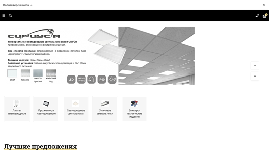 | AI-анализ | --- The web project "SiriusA" is an e-commerce platform for buying LED lighting products directly from the manufacturer. It offers a catalog and price list for various types of LED lamps, panels, projectors, and outdoor lights, including high-power, T8, UFO, and universal models. The site features sections for downloads, quadratic and circular shapes, and emergency exit lighting. Users can place orders, manage their profiles, and contact the sales department. The company also provides information about itself, customer reviews, certifications, and job openings. The site operates Monday through Friday from 8:00 AM to 6:00 PM. Products include various LED lighting solutions for offices, workplaces, and outdoor settings. Some popular items are the Cruiser series, which includes console-mounted uplighters, and the ultra-thin panel series. Users can add items to their cart, |