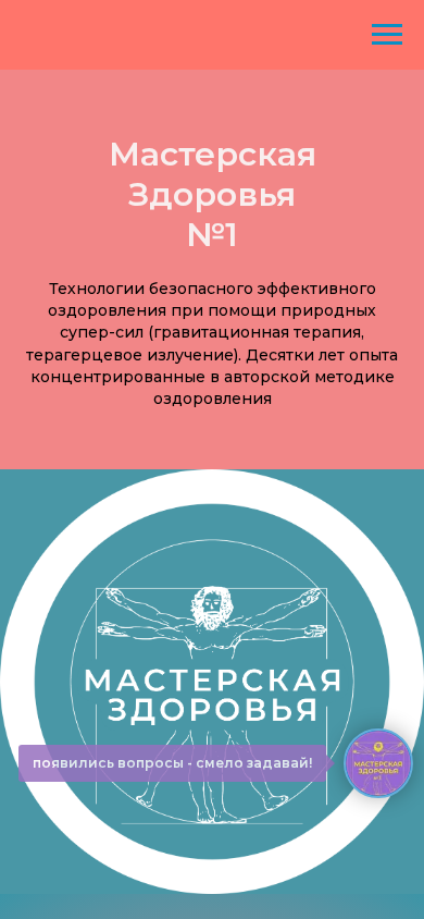 | Название / Заголовок | Мастерская Здоровья №1 – технологии безопасного эффективного оздоровления при помощи природных супер-сил (гравитационная терапия, терагерцевое излучение). Десятки лет опыта концентрированные в авторской методике оздоровления |
