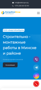 | AI-анализ | --- This website is dedicated to providing various electrical services in Minsk, Belarus. The main focus includes electromontage works, electrical installations, and technical support for both heating and electrical systems. The company offers services for electrical connection, transformer station maintenance, and engineering system installations, among others. They also provide smart home system installation, electrical panel manufacturing, and hire out specialized equipment. The website contains news and useful information, and contact details are provided for inquiries. The company is called ООО «ЭнергоКомГрупп». |