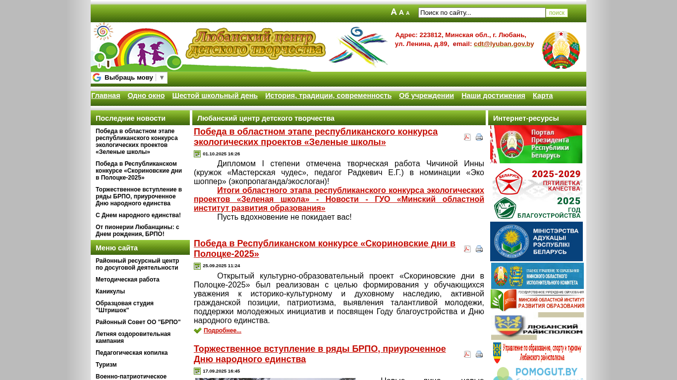 | SEO-описание | Государственное учреждение образования «Любанский центр детского творчества» |