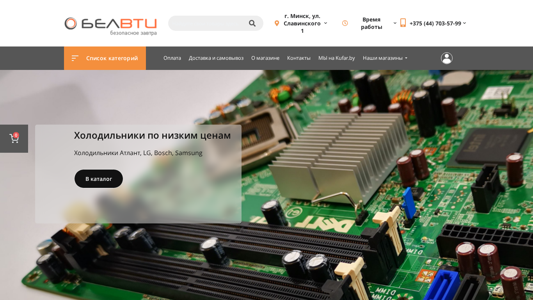 | AI-анализ | The web project "Бытовая техника с уценкой и б/у в Минске | интерnet-магаzin БелВТИ" is an online store selling used and discounted household appliances in Minsk, Belarus. The constantly updated catalog on the site BelVTI includes various categories such as refrigerators, washing machines, microwave ovens, computer components, and kitchen appliances. The store's address is located in Minsk at ul. Slavinskogo 1, and their operating hours are Monday to Friday from 9:00 AM to 6:00 PM and weekends as holidays. The store's phone numbers are +375 (44) 703-57-99 and +375 (17) 307-01-12. Categories include refriger |