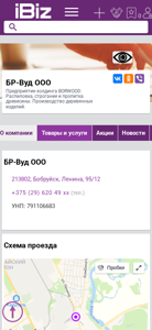 | AI-анализ | The website is a business directory listing for BR-Wood OOO, a company in Bobruisk, Belarus specializing in wood processing. The company provides services for sawmill, carpentry, and finishing of wood, as well as manufacturing wooden products. The website includes a contact section with a phone number and an address, and a map scheme for visitors. The business hours are listed as Monday to Friday from 9am to 6pm without lunch breaks. The company is categorized under 'Derevoobrabotka i oborudovanie' (wood processing and machinery) in the Ibiz.by business directory. |